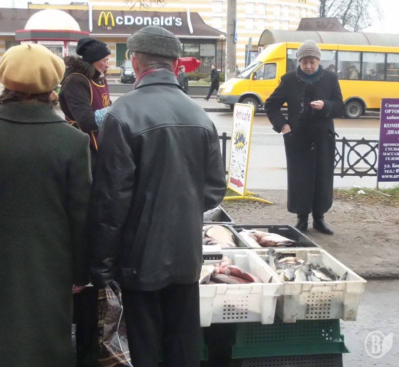 У день конфіскації журналіст порівняв ціни на рибу у торговки на зупинці і магазині. На вулиці дешевше: сом - 50 грн, в магазині -64. Щука -35грн, магазин – 50. З цим ясно. Ось чому люди так захищають торгівлю на вулиці.