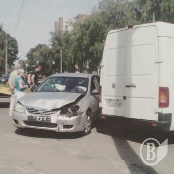 На месте открытой сегодня велодорожки в Чернигове случилось ДТП — не разминулись легковик KIA и фургон Фольксваген.