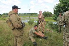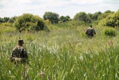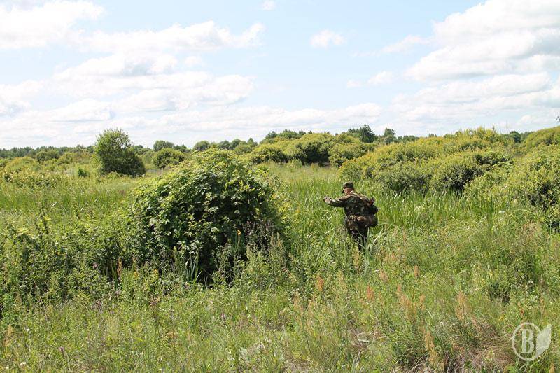 Один із досвідчених спецназівців навчив мене ступати не прямою ногою, а ставити ступню в спеціальному взутті майже перпендикулярно лінії руху, а би приминати осоку і не провалюватися.