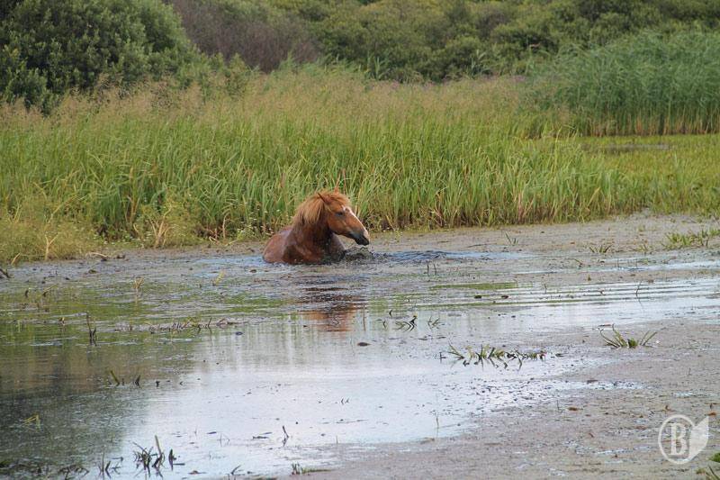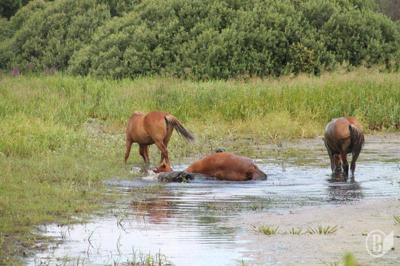 Не вдалося відзняти момент, коли кінь ліг у воду і чи то від задоволення, чи від блаженства у спеку – бив копитом по воді. З хвилину! Я в цей час виливав воду з черевика, який впускає воду через верх і не випускає назад
