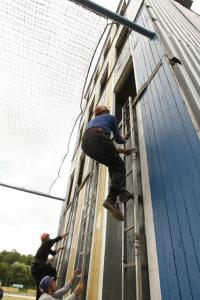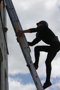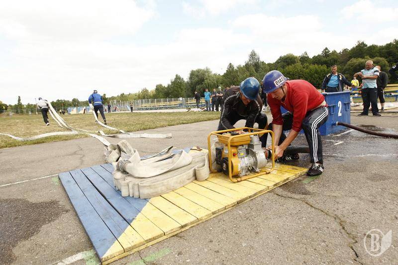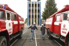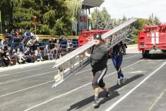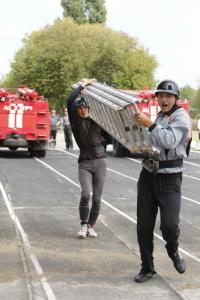 Соревновались пожарники на трех жизненно важных профессиональных этапах: штурмовая лестница, поднятие по выдвижной лестнице и боевое развертывание.