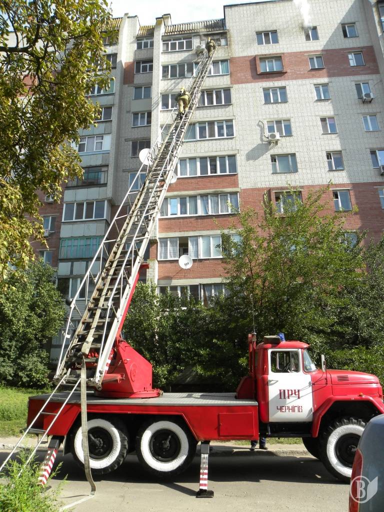 Спасатели быстро погасили пожар 16 сентября в квартире на последнем этаже девятиэтажного жилого дома по проспекту Победы, 143 в Чернигове.