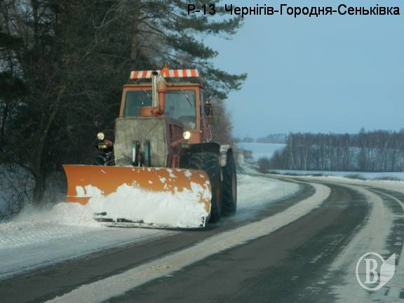 Руководство Службы автодорог и ГП “Черниговский облавтодор” постоянно круглосуточно осуществляло контроль за состоянием дорог и организацией работ при необходимости подкрепляло механизмами наиболее тяжелые участки. Особенное внимание было приковано к международным и национальным транспортным коридорам. 18 900 тонн песчано- соляной смеси и 320 тонн чистой соли понадобилось черниговским дорожникам для того, чтобы обработать покрытие и обеспечить бесперебойный проезд на дорогах с наиболее интенсивным движением транспортных средств и транзитными направлениями, такими как М-01 Киев – Чернигов – Новые Яриловичи, М-02 Копти –Глухов – Бачевск Н-07 Киев – Сумы – Юнакивка. Толщина снежного покрова на этих дорогах достигала 10-15 сантиметров при температуре до – 20 градус мороза.