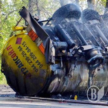 На киевской трассе перевернулся и горел бензовоз «КийТрансОйл»