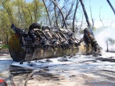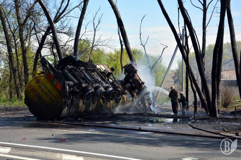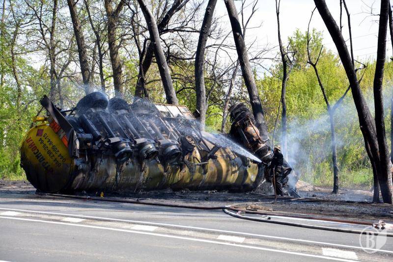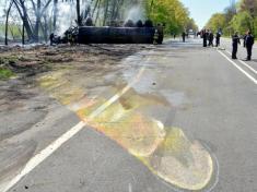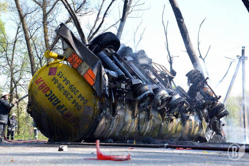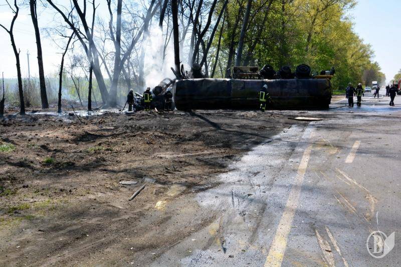 Вчера, 28 апреля на трассе «Чернигов-Киев» около села Ивановка перевернулась и сгорела автоцистерна с 13 тоннами дизтоплива. По предыдущей информации, у тягача лопнуло колесо, в результате чего он перевернулся и загорелся.