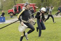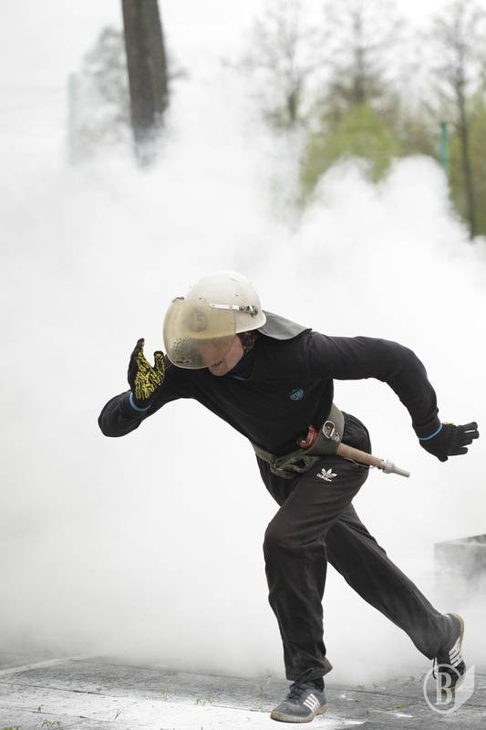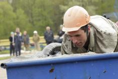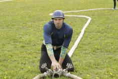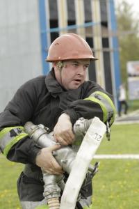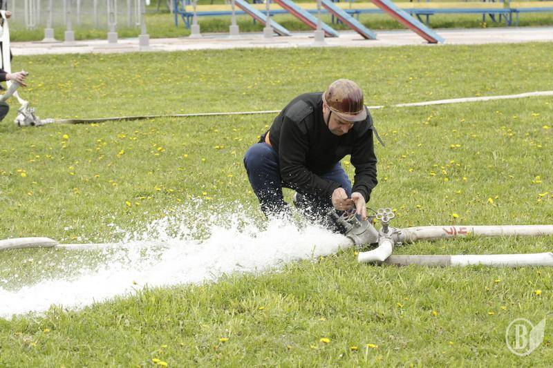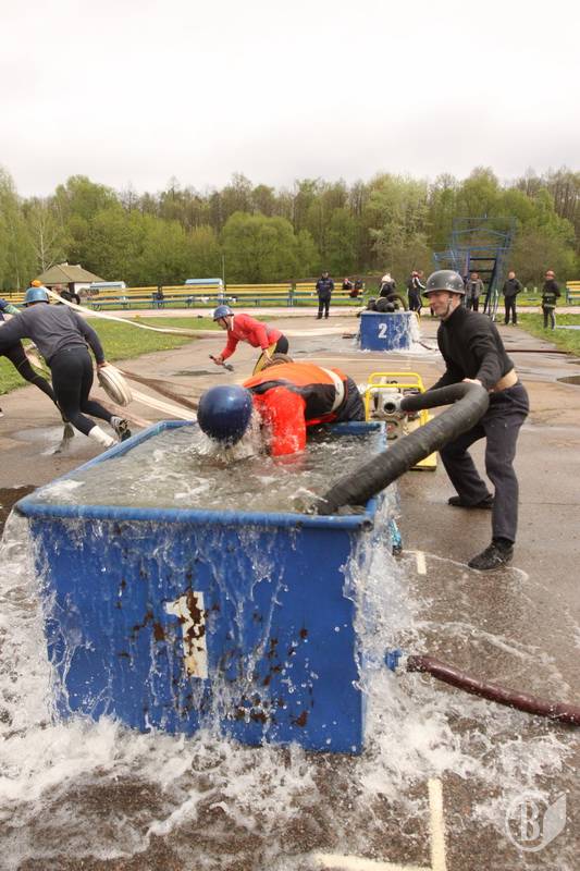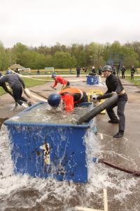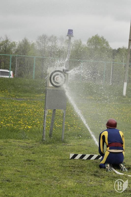 Один из самых зрелищных этапов соревнований – боевое развертывание. В этом командном виде участники команды разворачивают рукавную линию от пожарной мотопомпы и пожарными стволами заливают специальные мишени. Все, как в реальных условиях во время гашения пожаров, ликвидации аварий и чрезвычайных ситуаций. Наилучший результат 61,65 сек. показала команда спасателей из города Городня.