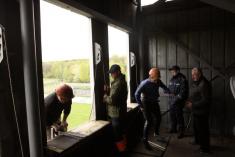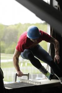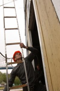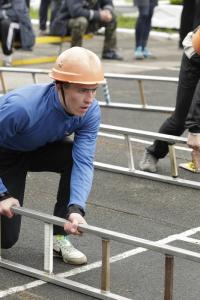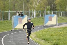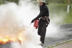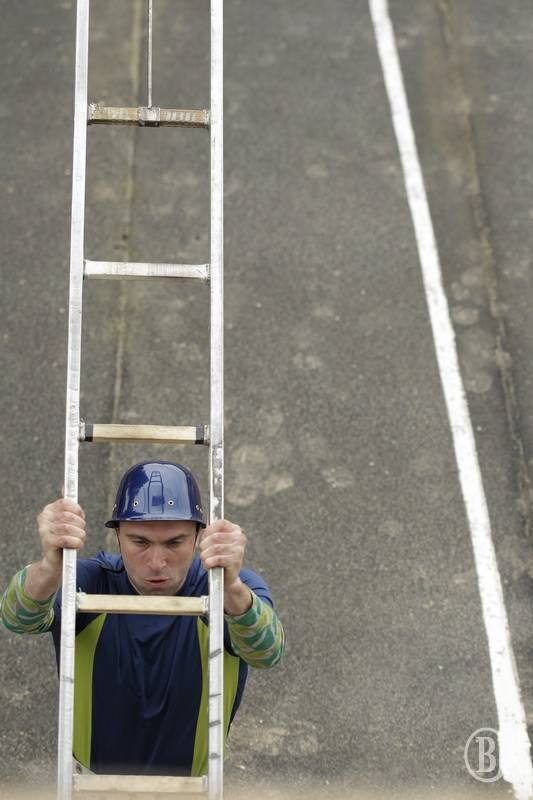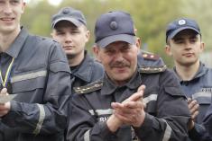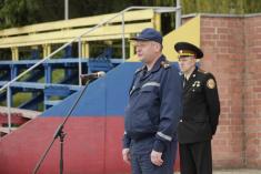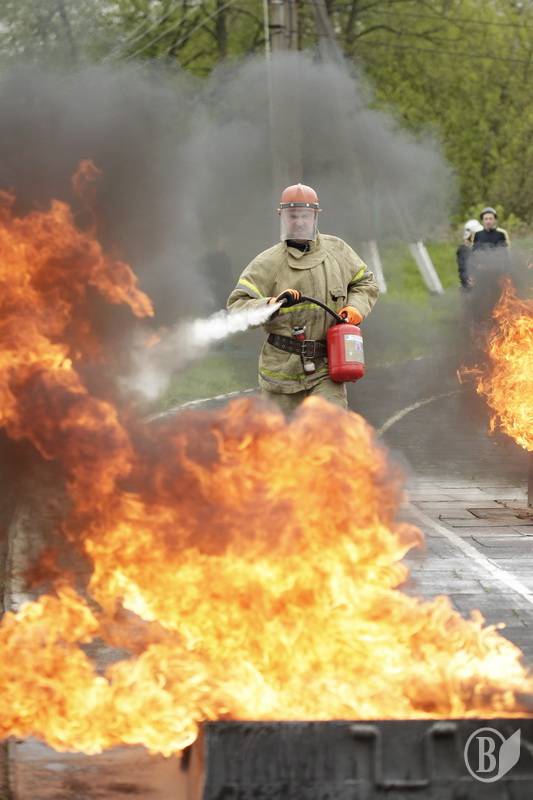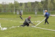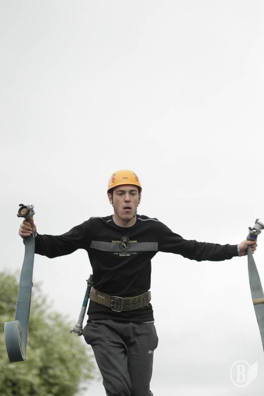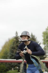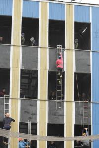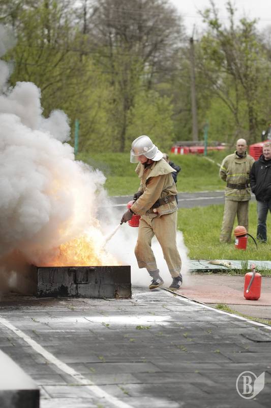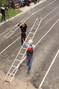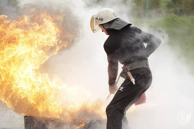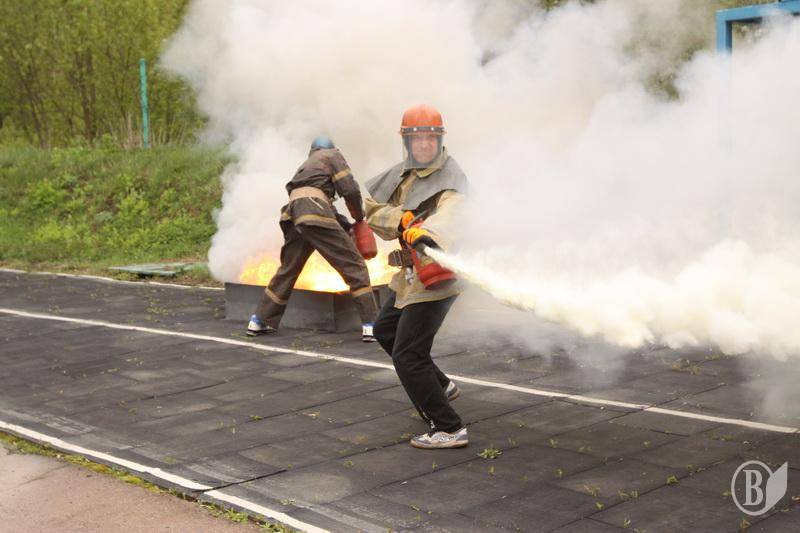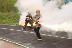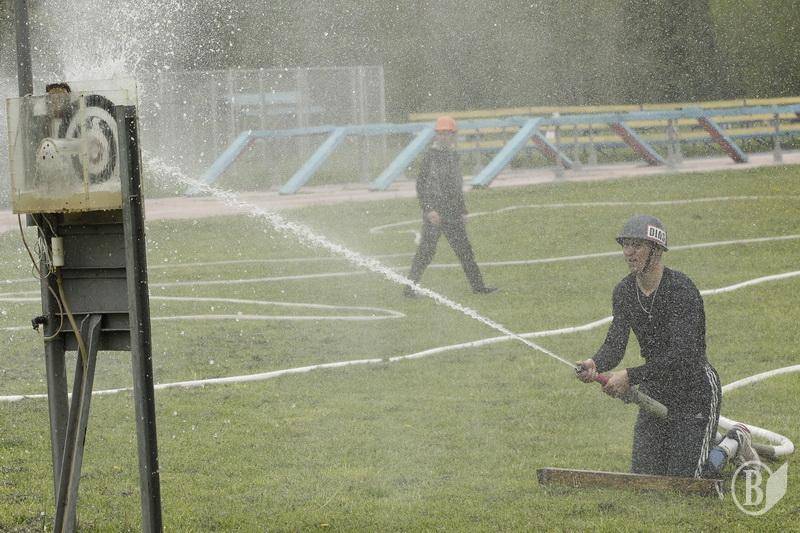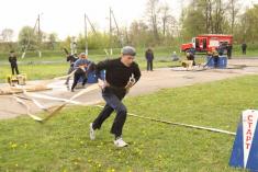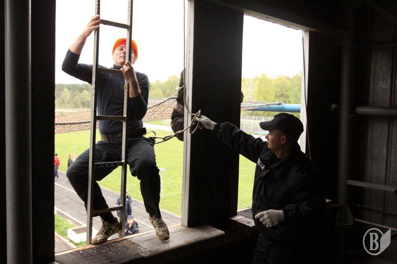 Спасатели соревновались в трех видах: подъеме по штурмовой лестнице в окно 4-го этажа учебной башни, пожарной эстафете 4х100 и боевом развертывании.