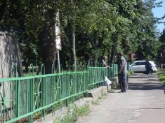 Уже утром рабочие взялись за молотки и пробуют поставить забор на место. Некоторые из работников похмеляются прямо на месте.