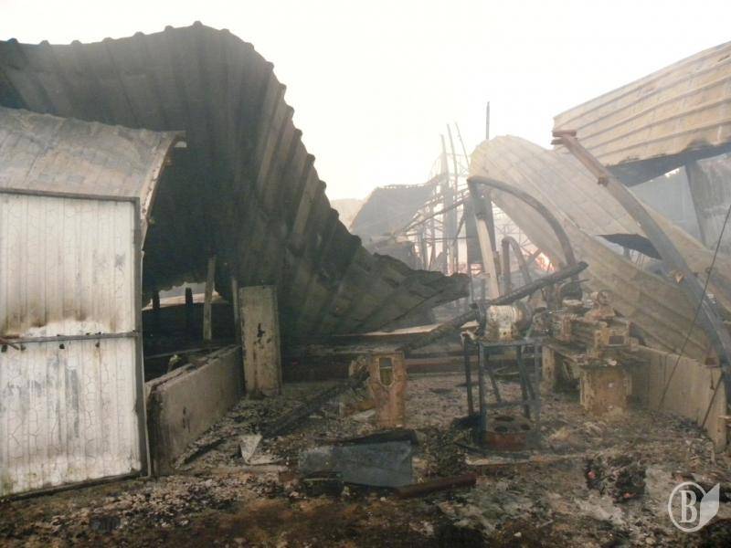 В результате пожара уничтожены кровли 5 овощехранилищ по всей площади, 2 металлических ангара и четыре единицы техники, из них два погрузчика и два грузовых автомобиля.