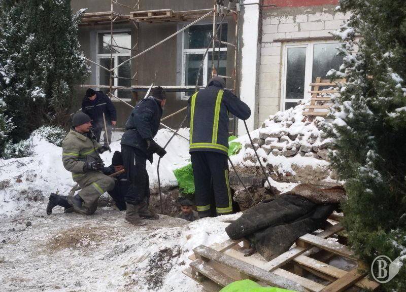Повідомлення про те, що під час проведення земляних робіт на вул. Чернігівській у Ніжині двох чоловіків затисло залізобетонною плитою, надійшло до Служби порятунку "101" 29 листопада о 14:10.