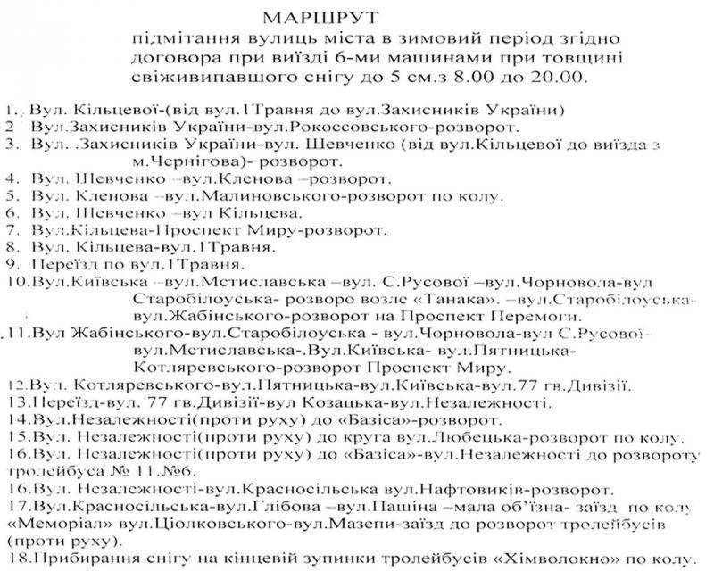 Виключенням є тільки дні з найбільшими снігопадами, які тривають постійно всю зміну – тоді в цю систему оперативно вносяться корективи. А саме, тоді пріоритетно розчищаються центральні вулиці й ті, де їздять тролейбуси, інший громадський транспорт. У тому числі, для того, аби люди вчасно могли дістатися на роботу. На інші дороги тоді техніка виїжджає пізніше.