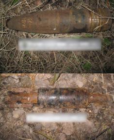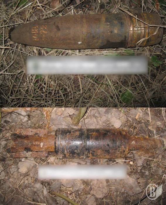 Оглянувши місце події, фахівці ідентифікували металеві предмети як корпус артилерійського осколково-фугасного снаряду калібру 100мм та корпус танкового кумулятивно-бронебійного снаряду калібру 125мм.