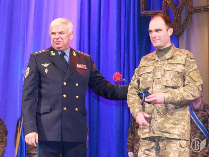 Сергій Дроздов (ліворуч від нас) під час урочистостей у драмтеатрі. Фото люб'язно надане Медіа-центром Міністерства оборони в м. Чернігів