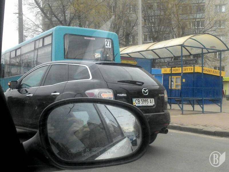 Легковик Mazda CX7 наздогнав, але не зміг обігнати автобус маршруту №27 у Чернігові.