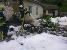 Під час падіння літак зачепив житловий будинок та загорівся. Пошкоджено 10 кв.м зовнішньої стіни будівлі.