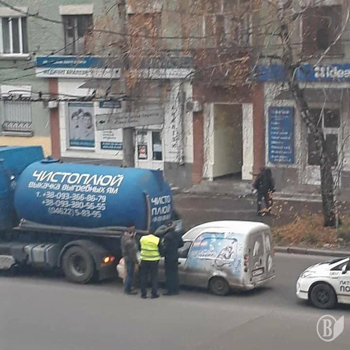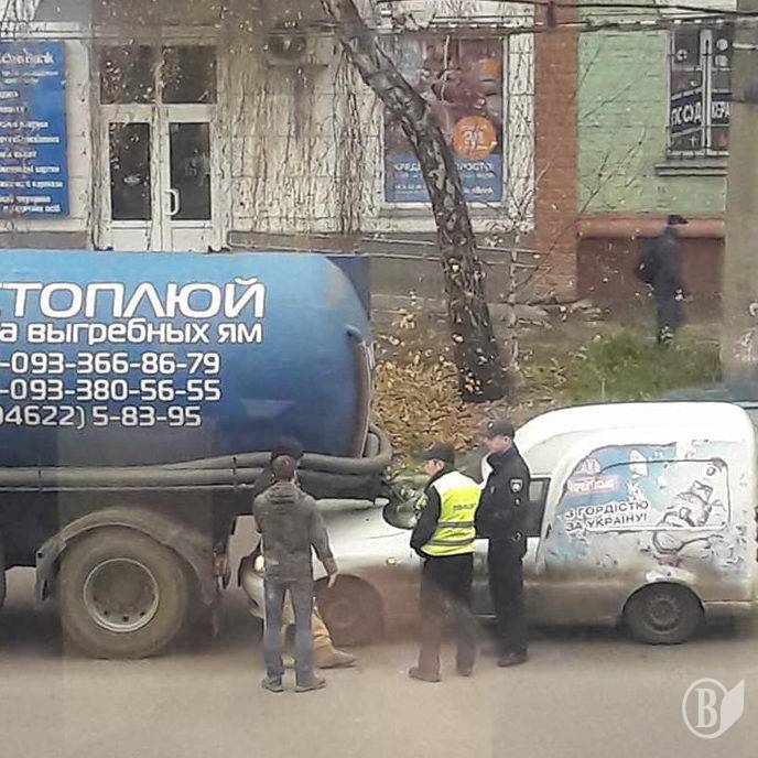 Зливний штуцер цистерни асенізатора зіпсував лобове скло «Ланоса»-розвозки.