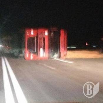 Як повідомляють очевидці, це була фура, навантажена зерном. Фура від спроб водія маневрувати перекинулася.