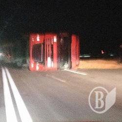 Як повідомляють очевидці, це була фура, навантажена зерном. Фура від спроб водія маневрувати перекинулася.