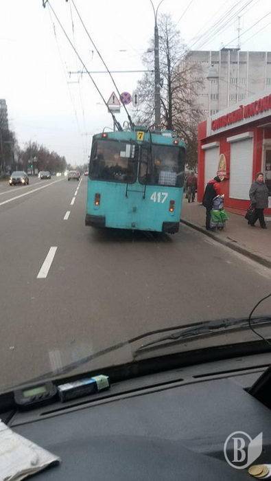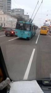 Тролейбус КП «ЧТУ» маршруту №7 з бортовим номером 417 «сів» на асфальт проспекту Перемоги в Чернігові.