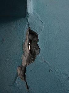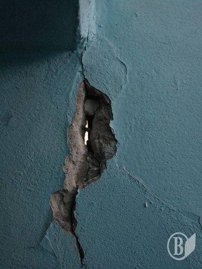 З подвір’я та з середини неозброєним оком видно тріщини на стику основної будівлі школи та прибудови до неї.