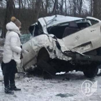На автошляху з Києва у Чернігів вранці 17 січня близько 7 години тягач з причепом вдарив білий вен «Мерседес», що стояв на узбіччі.