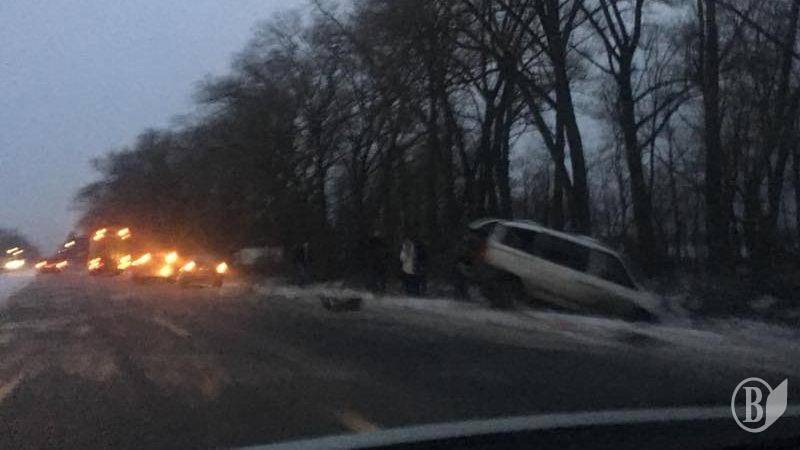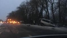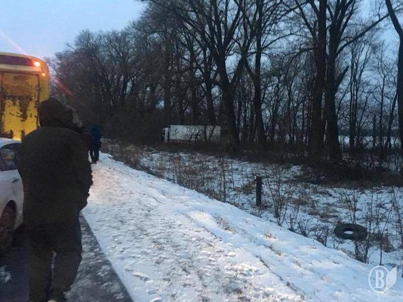 На автошляху з Києва у Чернігів вранці 17 січня близько 7 години тягач з причепом вдарив білий вен «Мерседес», що стояв на узбіччі.