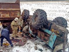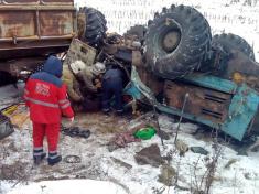 Водій трактора «Т-150К» не впорався з керуванням, з’їхав в кювет та перекинувся.