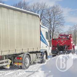 Надзвичайники Менського районного підрозділу відбуксирували два вантажні автомобіля "DAF", що застрягли та створили затор на проблемній ділянці дороги по вул. Садовій, що в районному центрі.