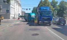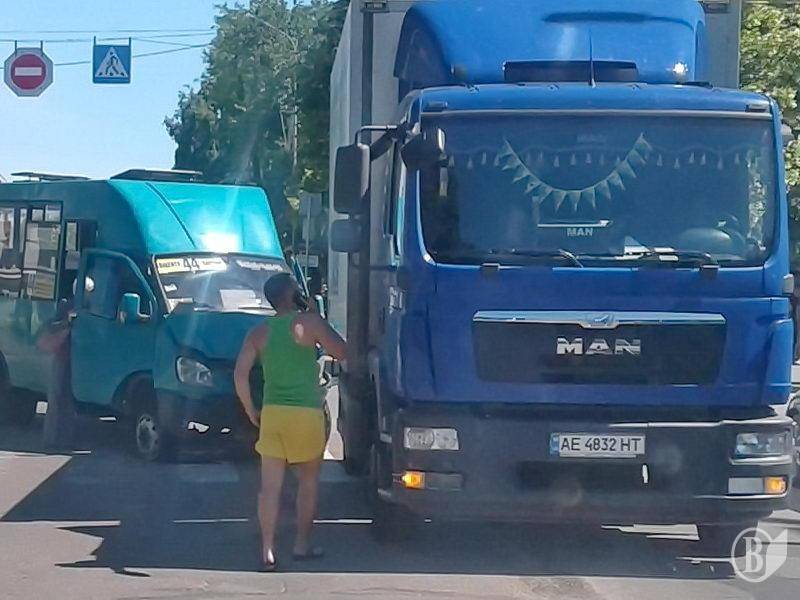 На перехресті вулиць Магістрацька та Кирпоноса у Чернігові зіткнулися автобус типу «Рута» маршруту №44 та вантажівка з номерами Дніпропетровської області.