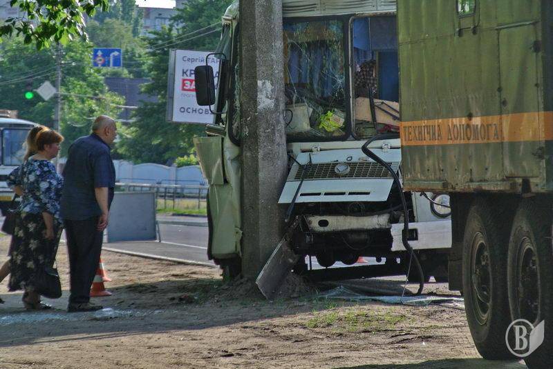 Як пояснив їм водій Микола цього автобуса 46 маршруту, він відмовився зупинити автобус на вимогу пасажира. Однак пасажир таки домігся свого: він вдарив водія, через що той і втратив орієнтацію під час руху. Сталося зіткнення і той пасажир... забрався геть.