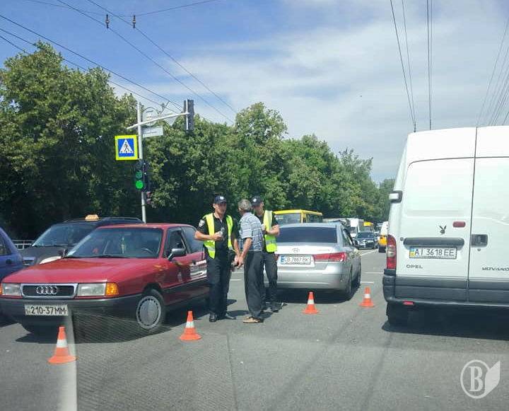 Не розминулися два легковика у Чернігові на перехресті одного з центральних проспектів – Миру та вулиці Мартина Небаби.