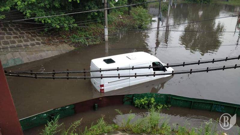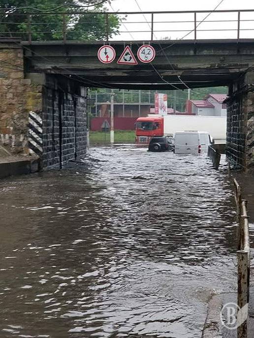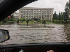 А місцями, як ось на проїзді з вул. Любецька до мікрорайону Масани, рівень води піднявся так, що тонули авто.