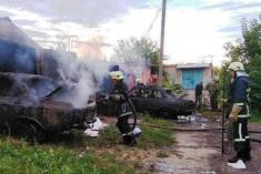 В результаті пожежі вогнем знищено два легкових автомобіля, майно в трьох гаражах, пошкоджено їх конструктивні елементи.