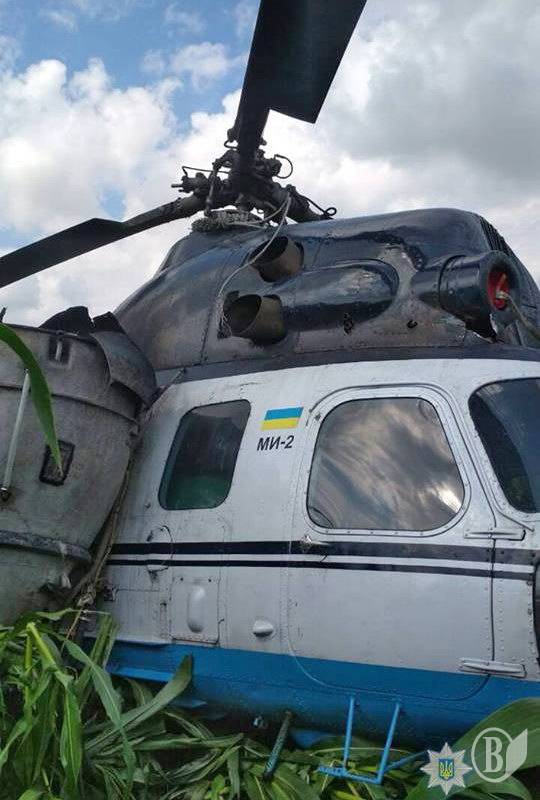 Вертоліт Мі-2 здійснив аварійне приземлення в Бобровицькому районі після того, як під час обробки полів зачепив гвинтом лінію електропередач.