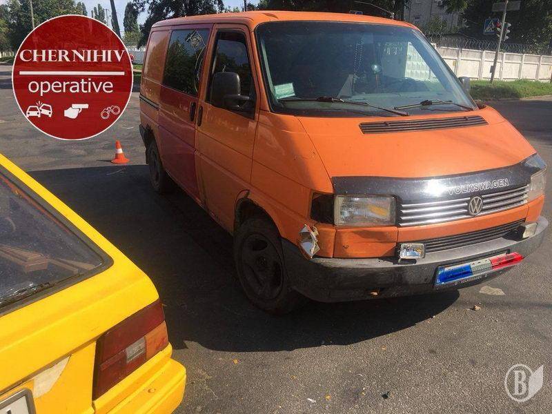 В Чернігові зіткнулися два авто – фургончик Volkswagen Transporter і якийсь старенький легковик golf-класу.