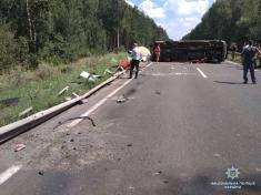 Близько 11 години до поліції зателефонували і повідомили про ДТП в Ніжинському районі: перекинувся мікроавтобус із пасажирами, є травмовані.