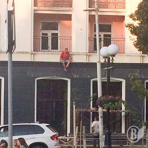 При цьому перед падінням він був вдягнений у червону футболку і шорти, а коли вже впав, то опинився у чорній футболці та штанях, схожих на джинси.