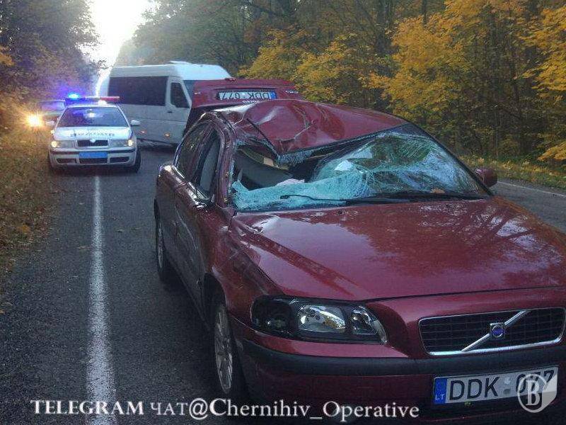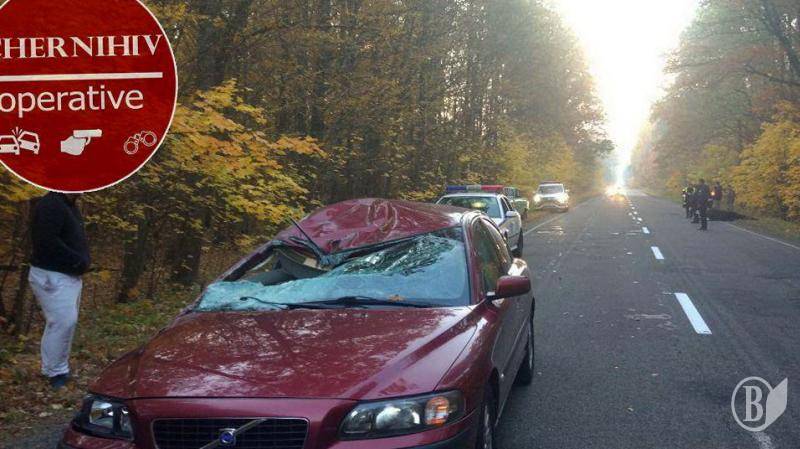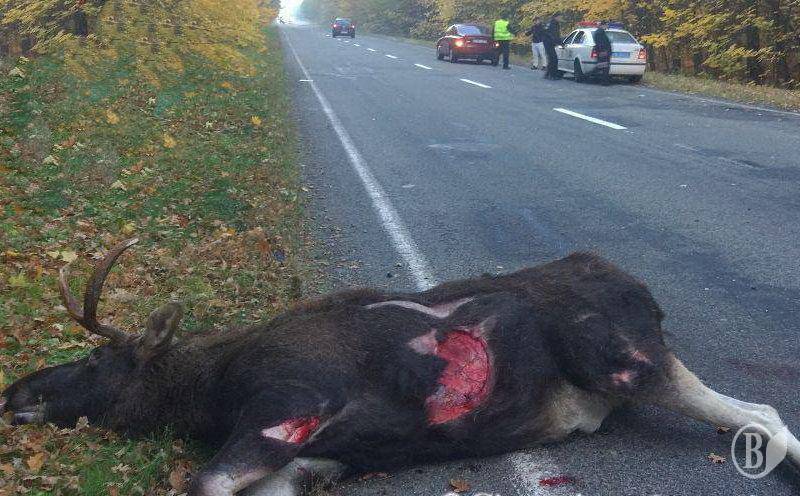 На трасі М-01 за 12 км до села Нові Яриловичі сталося зіткнення легковика Volvo з дикою твариною – лосем.
