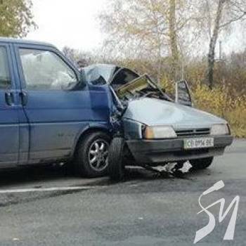 Водій легковика ВАЗ-21099 не впорався з керуванням, виїхав на смугу зустрічного руху та здійснив зіткнення з фургончиком «Volkswagen Transporter», що їхав назустріч.