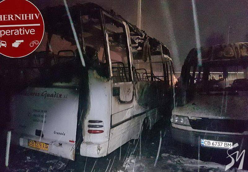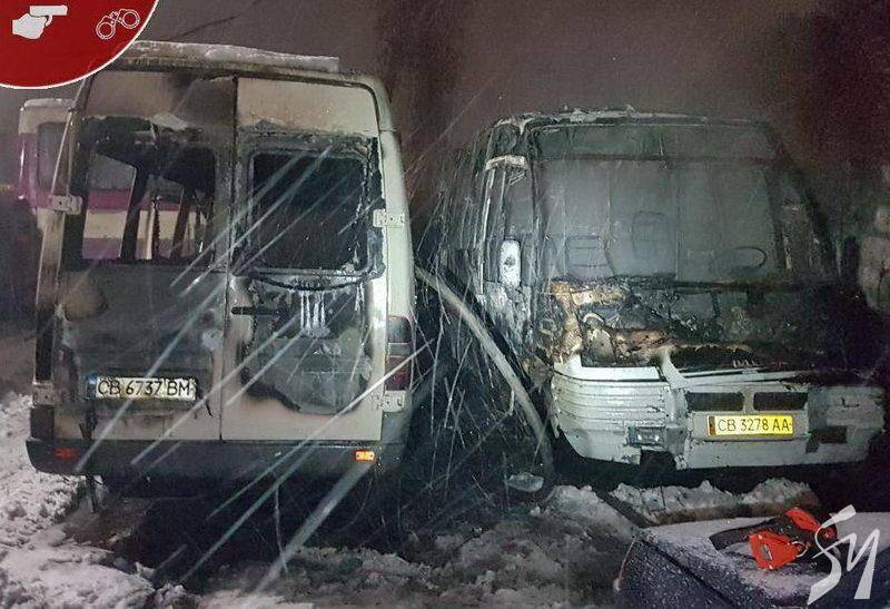 Цієї ночі в Чернігові на парковці в промзоні на вул. Дрозда, 3 вигоріли два мікроавтобуса.