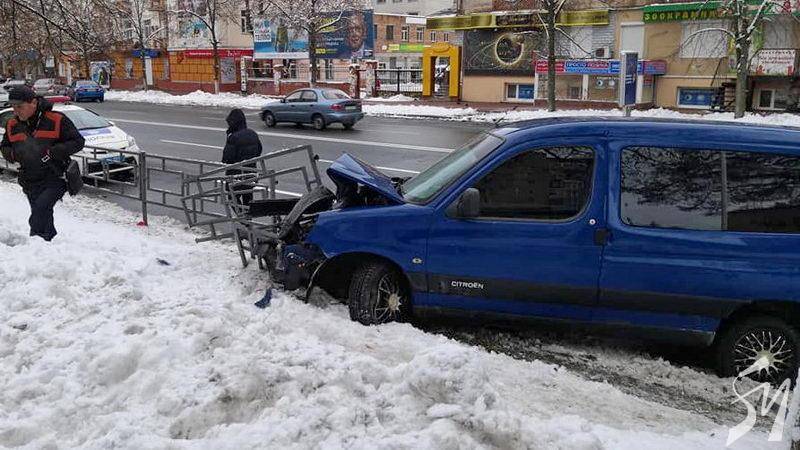 Вранці 14 грудня чи ще вночі на проспекті Перемоги в центральній частині Чернігова легковик вдарився у металеву огорожу.