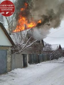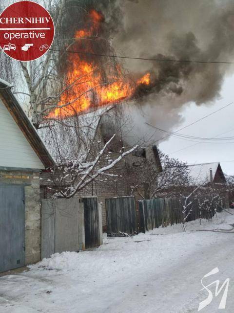 Приватний цегляний будинок погорів у Чернігові в районі 5 кутів на вул. Челюскінців.