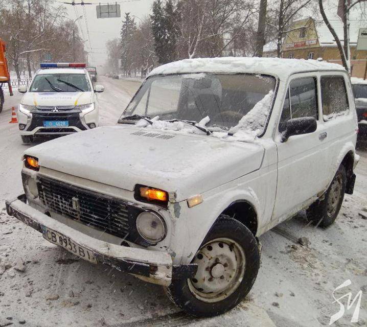З одного боку – доробок радянського автопрому «Нива» з українськими держномерами СВ8953ВІ чернігівської реєстрації.
