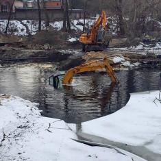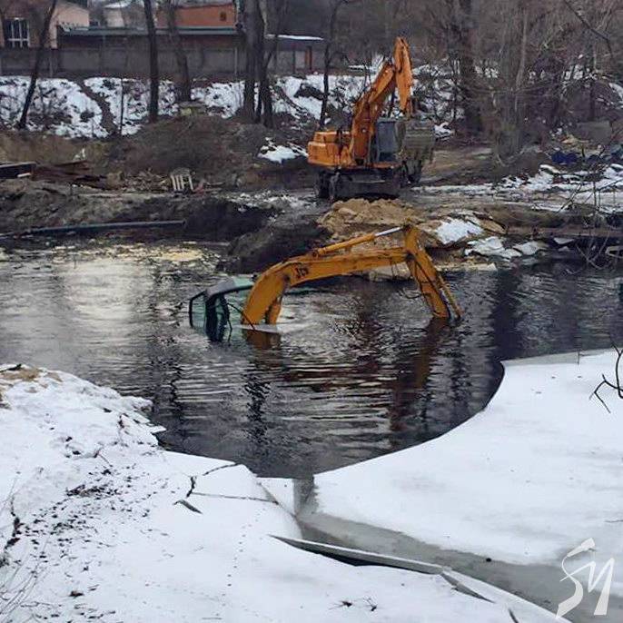 У Чернігові на багатостраждальній річечці Стрижень під час відлиги пішов під воду екскаватор.