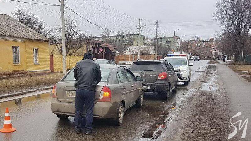 На вул. Гетьмана Полуботка в Чернігові там, де вона проходить за територією КП «Чернігівське тролейбусне управління», один легковик «наздогнав» іншого і вдарив у корму.