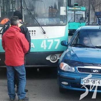 У Чернігові в суботу, 2 березня на початку вул. Івана Мазепи сталося зіткнення тролейбуса КП «ЧТУ» і легковика – доробку ЗАЗу.