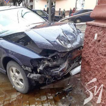 Після зіткнення Opel ще й втулився в кут будівлі нового готелю.