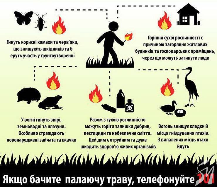- спалювати стерню та рослинні залишки на сільськогосподарських полях;