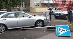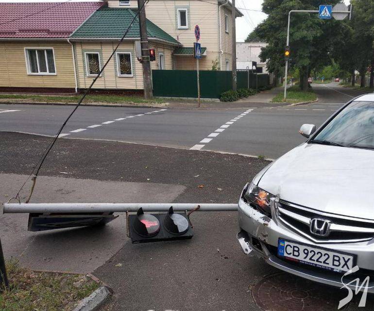 Сьогодні це авто знесло стовпчик зі світлофором для пішоходів на перехресті вул. Гетьмана Полуботка та Олександра Молодчого.