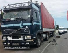 Після того вантажівка наїхала на водіїв автомобіля "VOLVO", які стояли поряд.